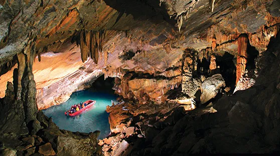 Penn’s Cave, the only cave in Pennsylvania on the National Register of Historic Places, features glittering stalactites and stalagmites, often in mysteriously familiar shapes, such as “The Statue of Liberty” and “The Garden of the Gods.” See how dripping water has sculpted magnificent flowstone, curtains, cascades, and draperies against a background of pillars and gigantic columns.