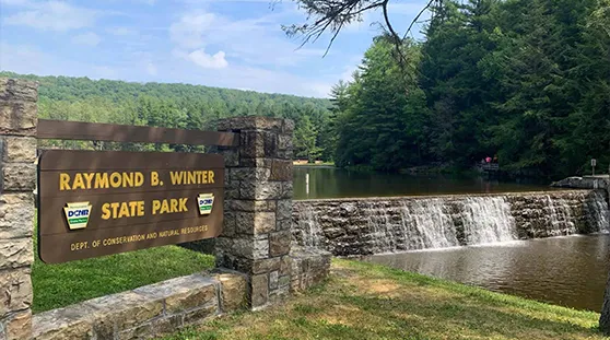 Raymond B. Winter State Park covers 695 acres of the Ridge and Valley Province in central Pennsylvania. Located within Bald Eagle State Forest. Halfway Lake is filled by spring-fed mountain streams and contained by a hand-laid, native sandstone dam. Open year-round, the park provides diverse opportunities for recreation.
